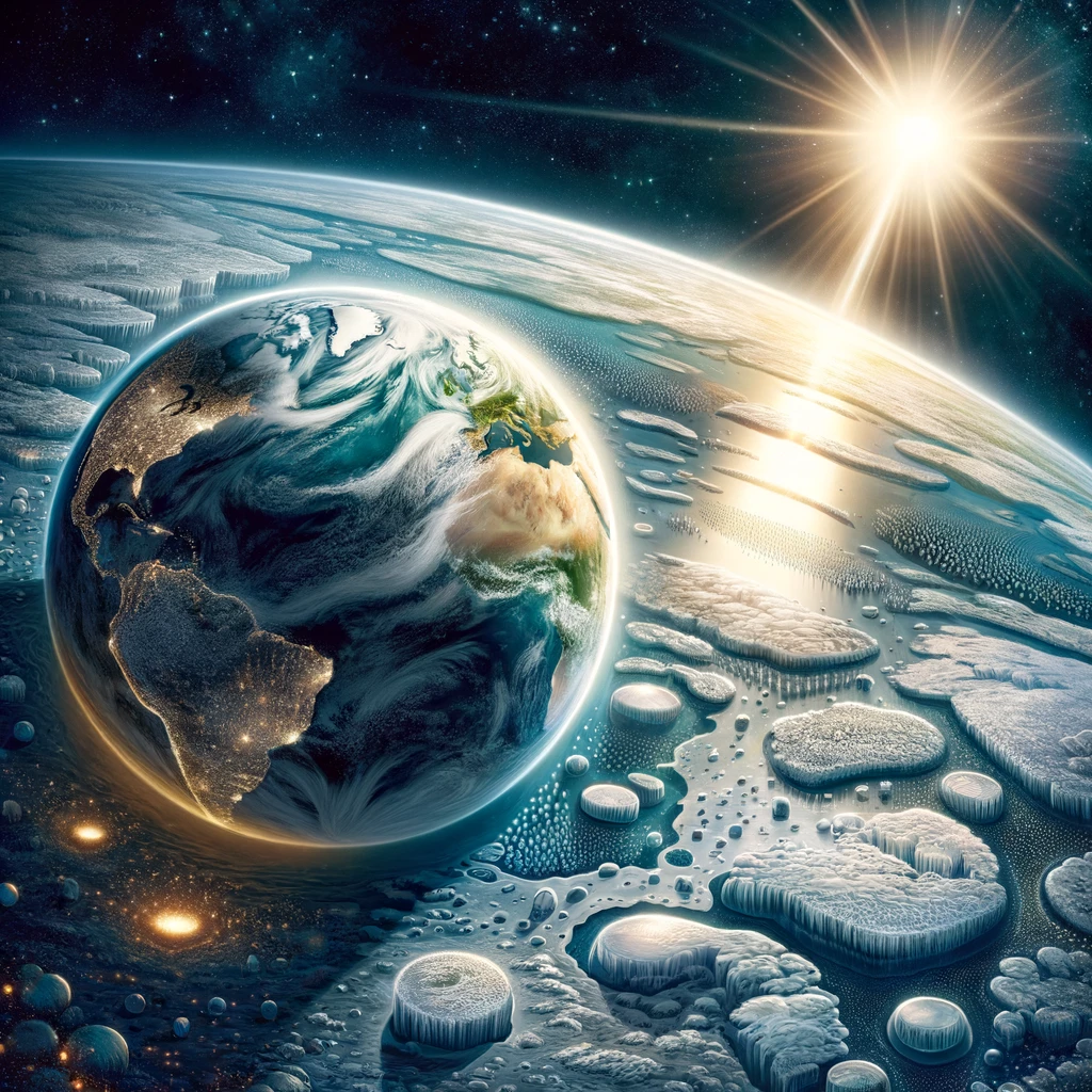 Figur 4.1: Illustrasjon av en jordklode uten drivhusgasser. Bildet er laget av Elisabeth Engum med hjelp fra Dall-E (Versjon 8.april 2024).