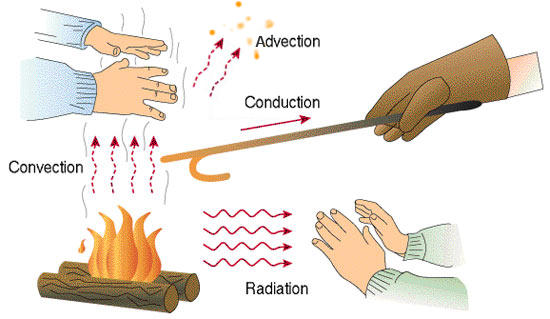 Se for deg at du sitter ved et bål en kjølig kveld for å varme deg. Varmen fra bålet overføres til deg og omgivelsene på flere forskjellige måter. Bruk begrepene konduksjon, konveksjon, adveksjon og stråling til å svare på spørsmålene under.
