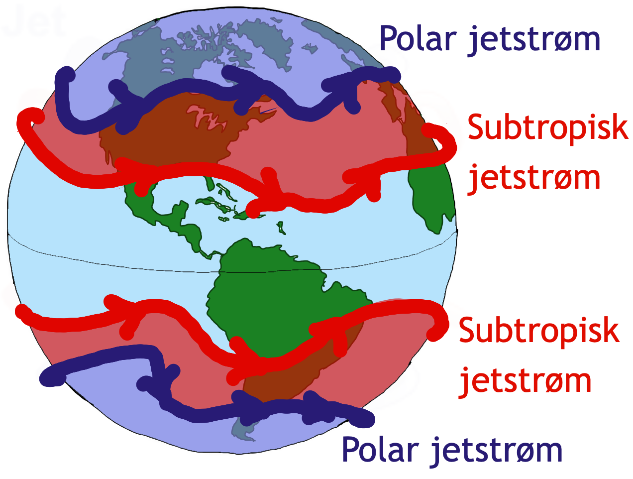Dette er årsaken til at jetstrømmene finnes der temperaturforskjellene mellom luftmassene er størst – for eksempel mellom polarluft i nord og subtropisk luft i sør.