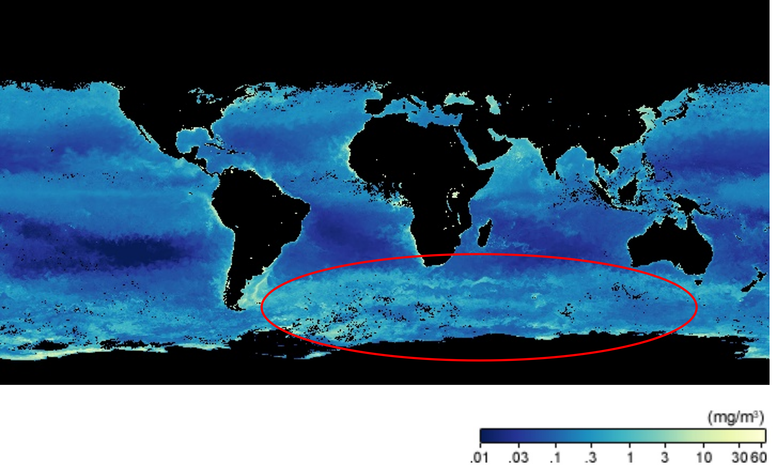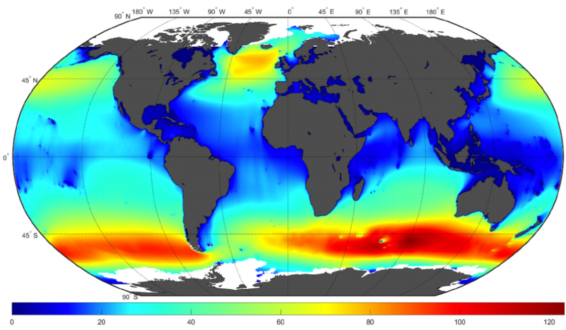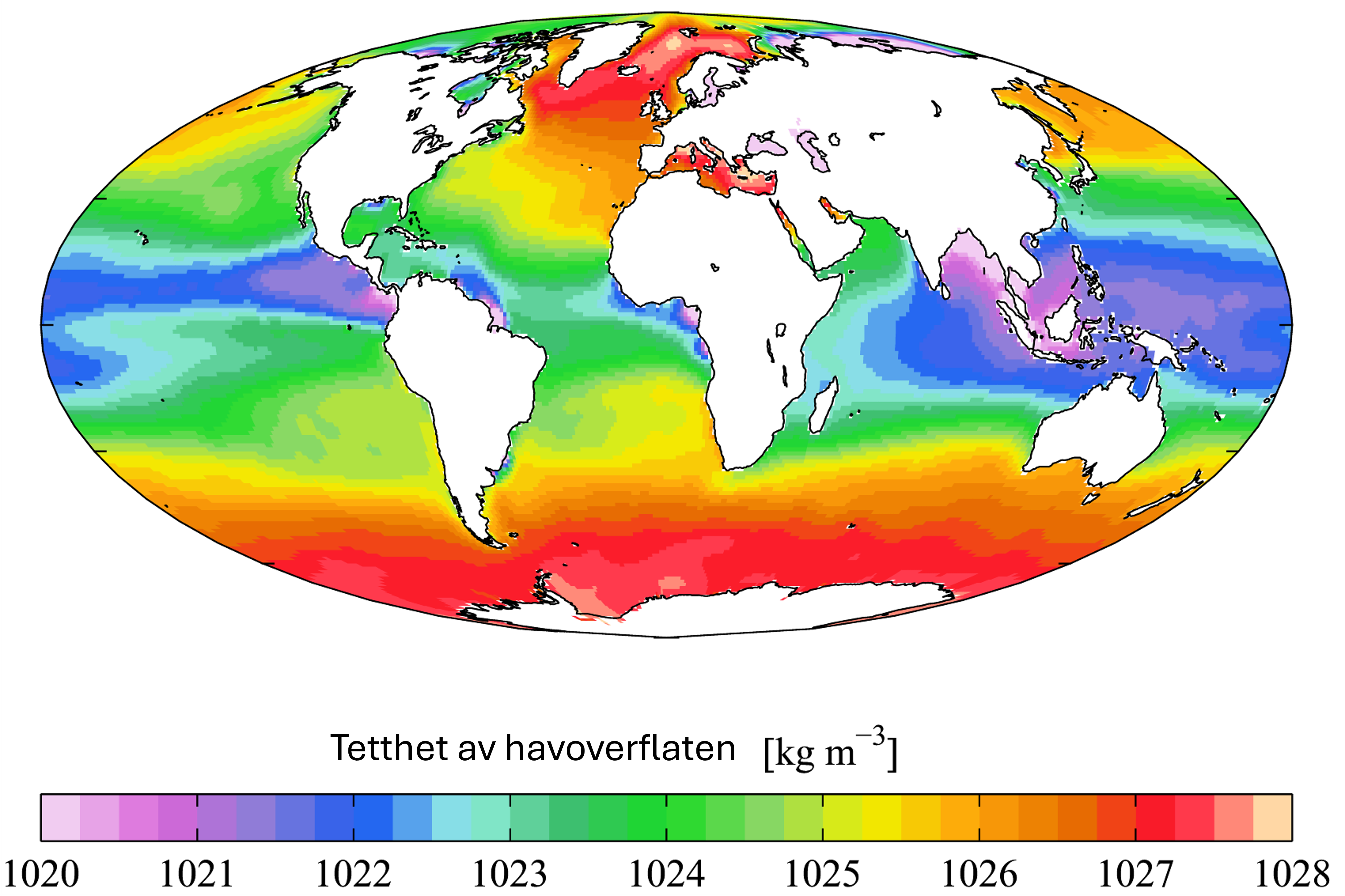 Figuren nedenfor viser overflatetettheten i verdenshavene.