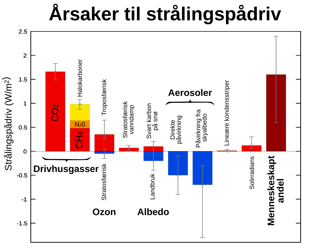 Menneskeskapte aktiviteter har økt konsentrasjonen av drivhusgasser betydelig siden den industrielle revolusjonen, noe som har skapt et vedvarende positivt strålingspådriv. Dette har forstyrret den naturlige strålingsbalansen og er hovedårsaken til den globale oppvarmingen vi opplever i dag.