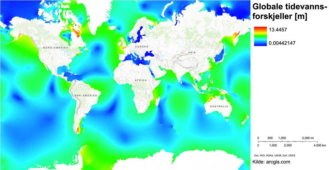 Gjer greie for faktorar som påverkar der ein kan utnytta energien i tidvassforskjellar.